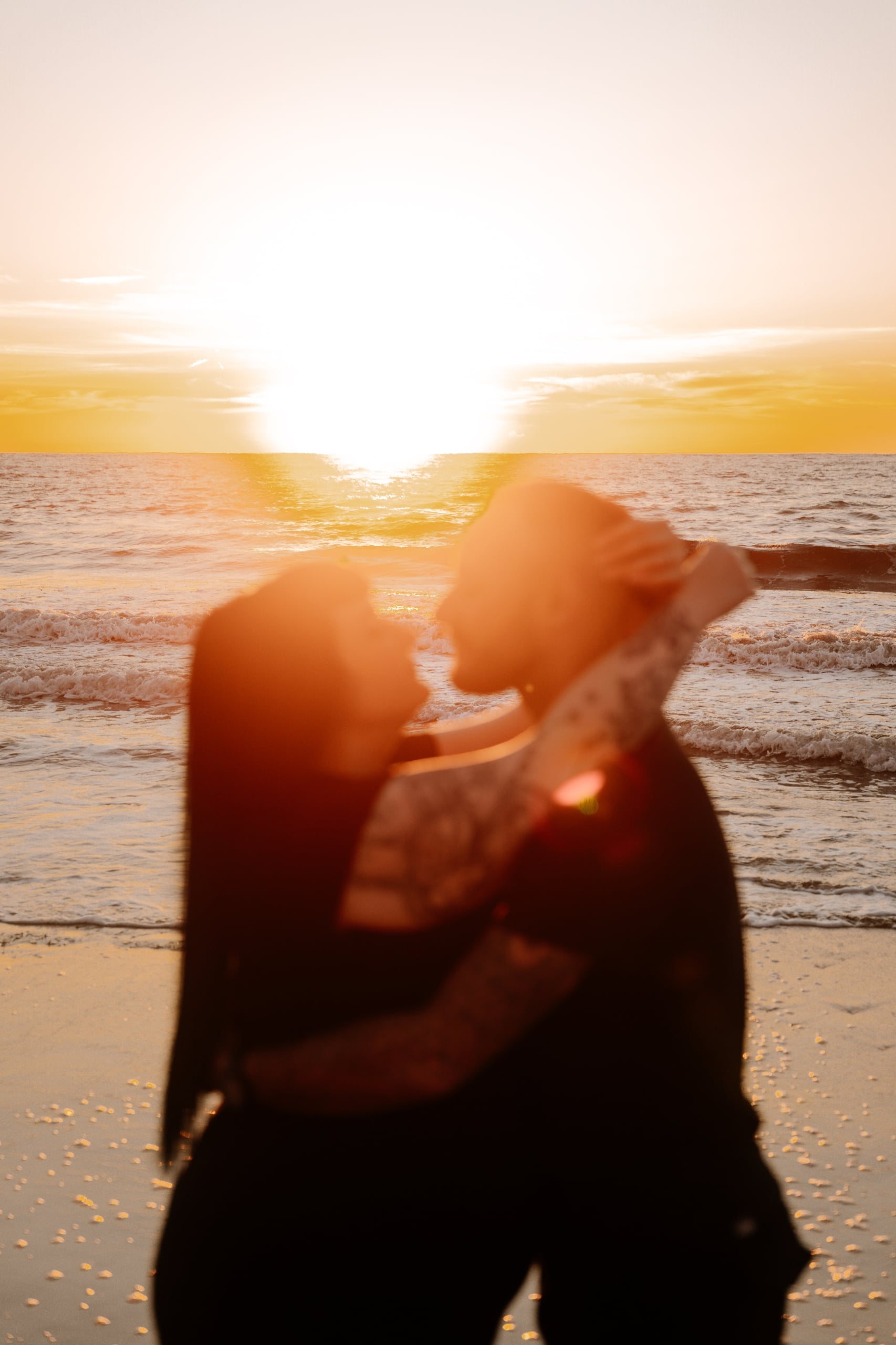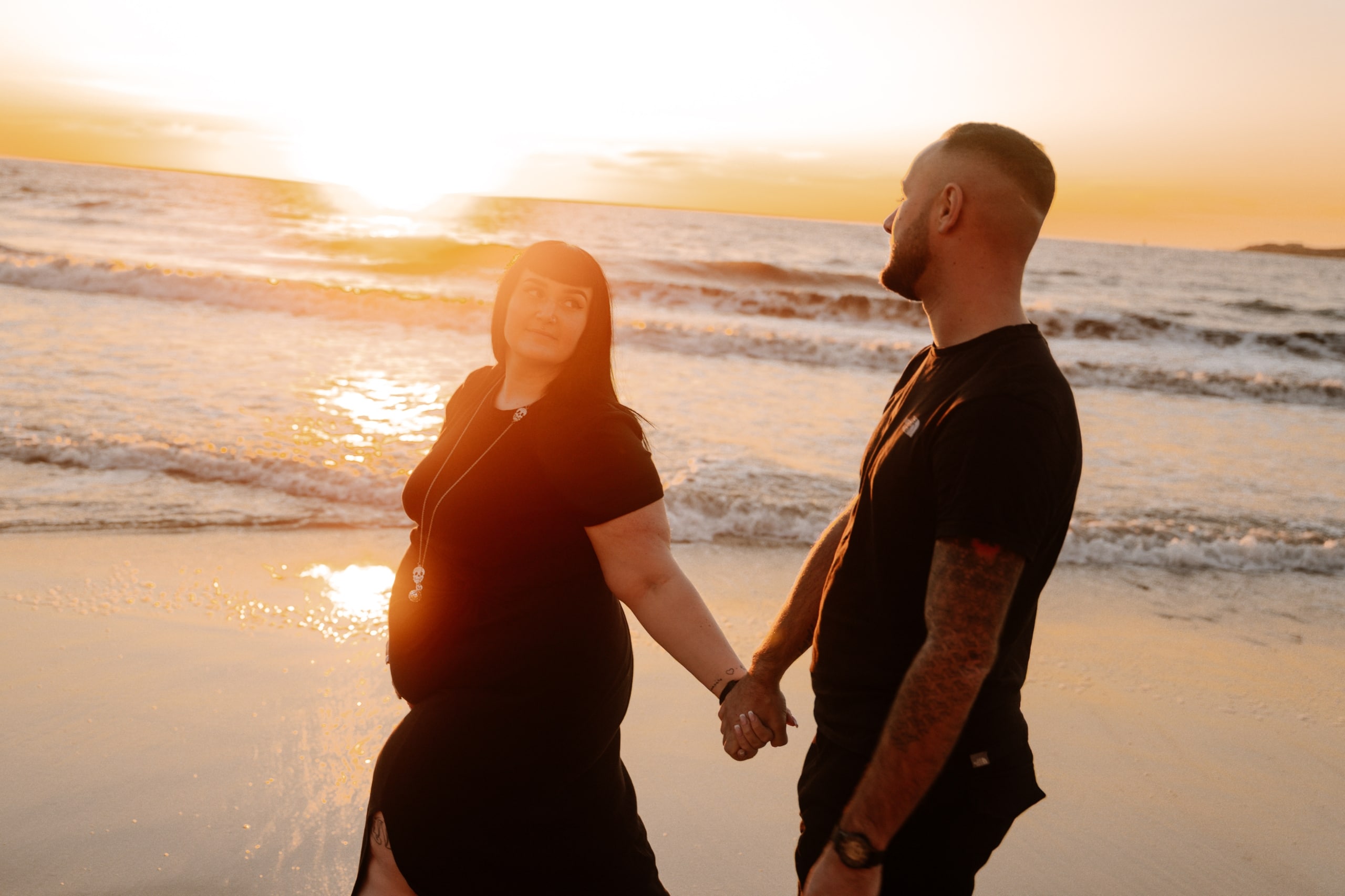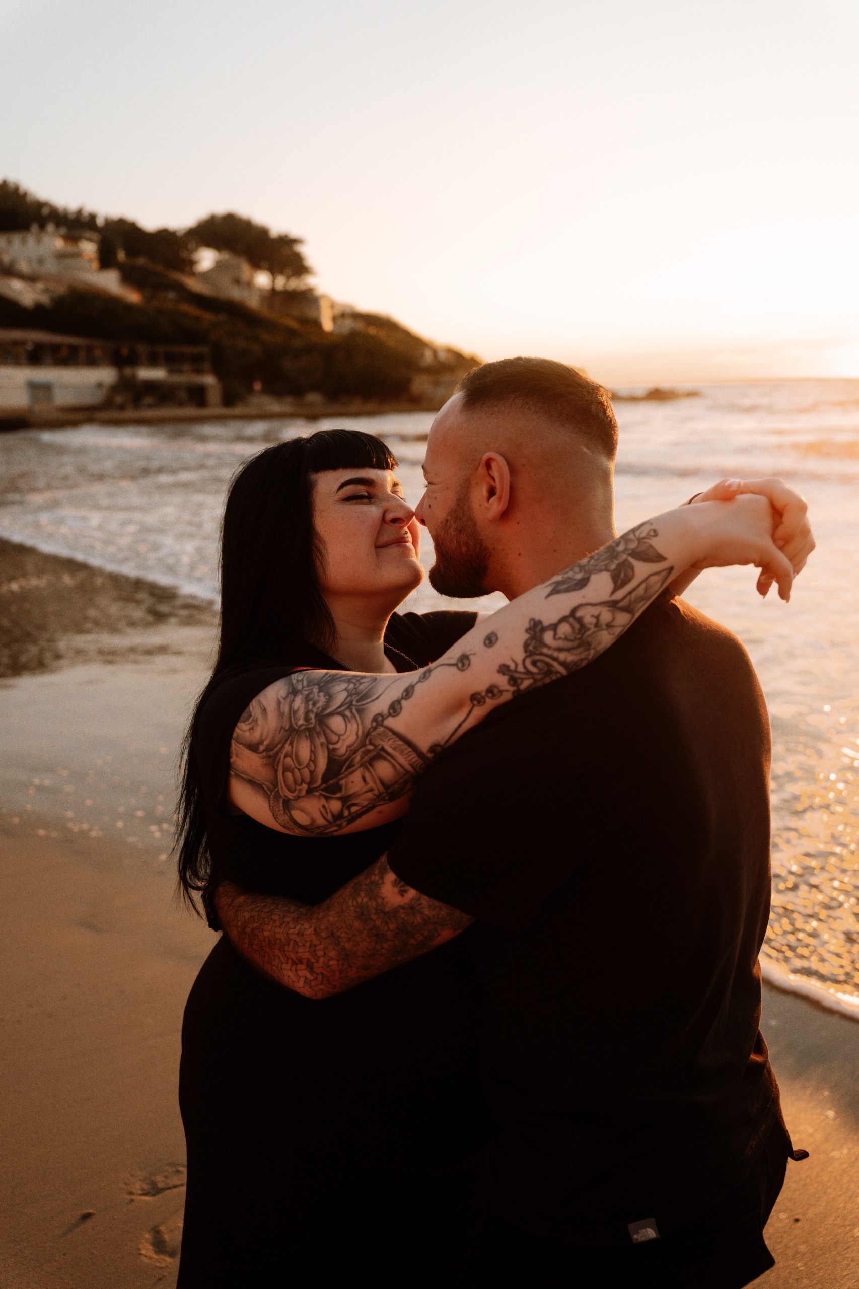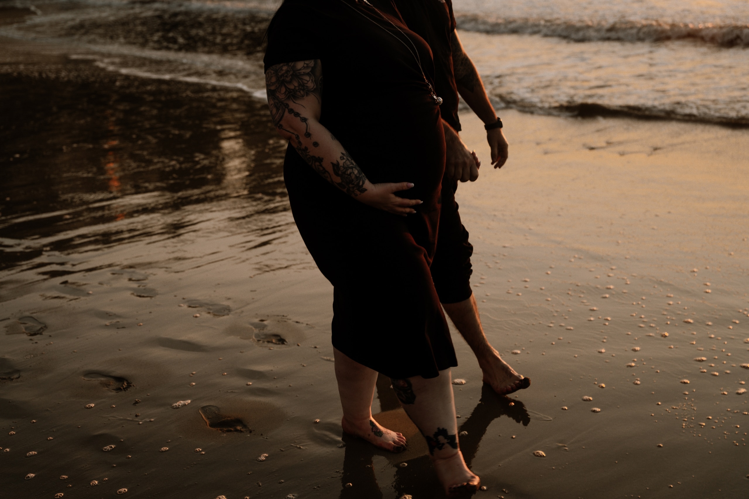 Imaginez-vous sur une plage, les pieds dans l’eau, avec un coucher de soleil flamboyant en arrière-plan. C’est exactement ce qui s’est passé lors de cette séance. La lumière dorée du soleil couchant a enveloppé le couple, créant une atmosphère magique. Chaque cliché dégageait une chaleur et une tendresse, témoignant de l’amour qui les unit. Les couleurs chaudes du ciel se reflétant dans l’eau ont ajouté une touche de féerie, rendant ces instants encore plus mémorables.