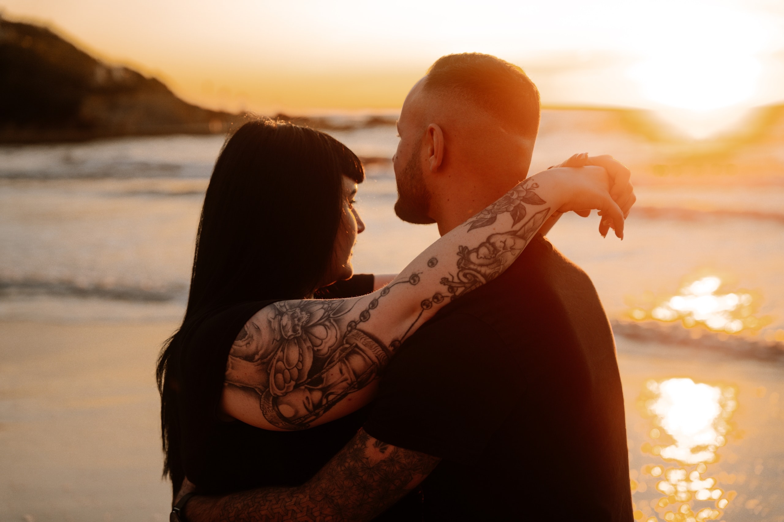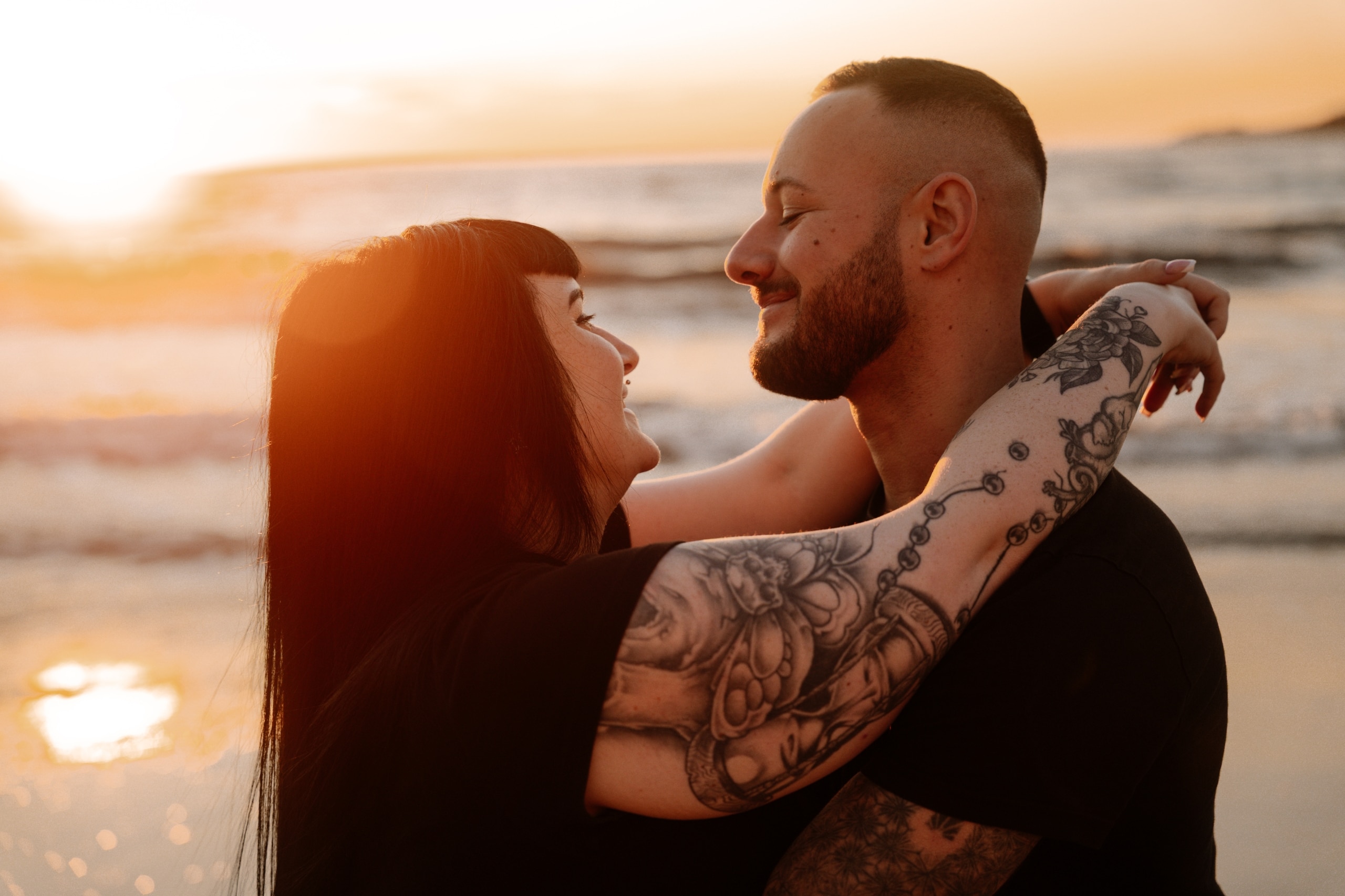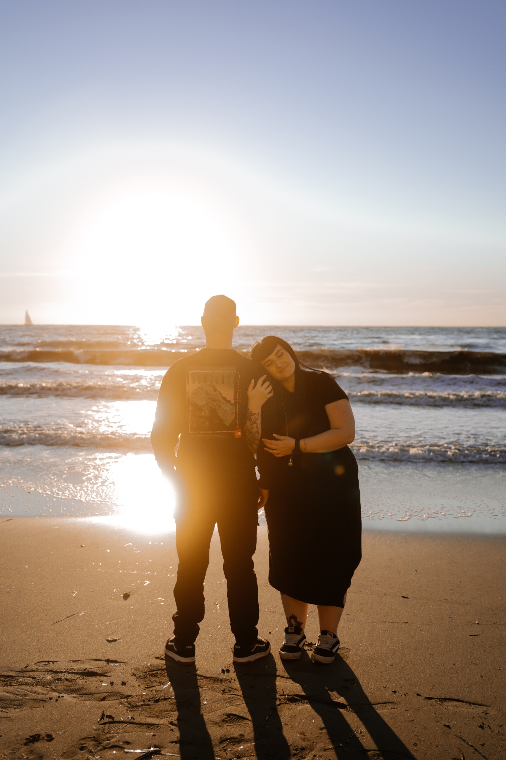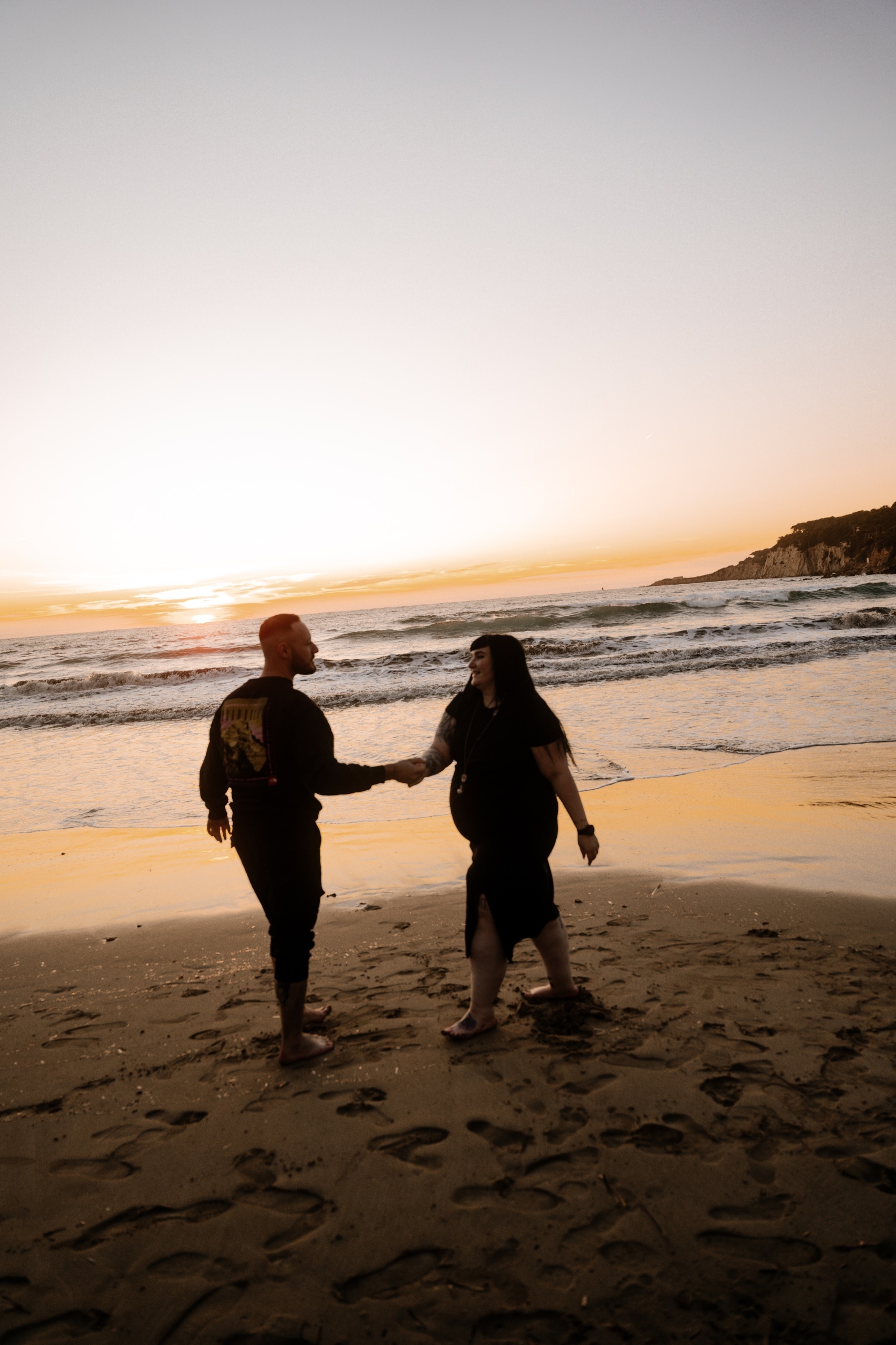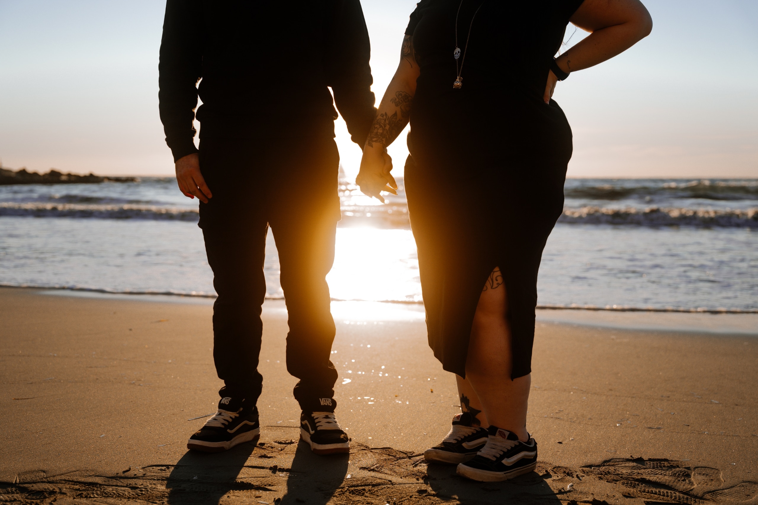Imaginez-vous sur une plage, les pieds dans l’eau, avec un coucher de soleil flamboyant en arrière-plan. C’est exactement ce qui s’est passé lors de cette séance. La lumière dorée du soleil couchant a enveloppé le couple, créant une atmosphère magique. Chaque cliché dégageait une chaleur et une tendresse, témoignant de l’amour qui les unit. Les couleurs chaudes du ciel se reflétant dans l’eau ont ajouté une touche de féerie, rendant ces instants encore plus mémorables.