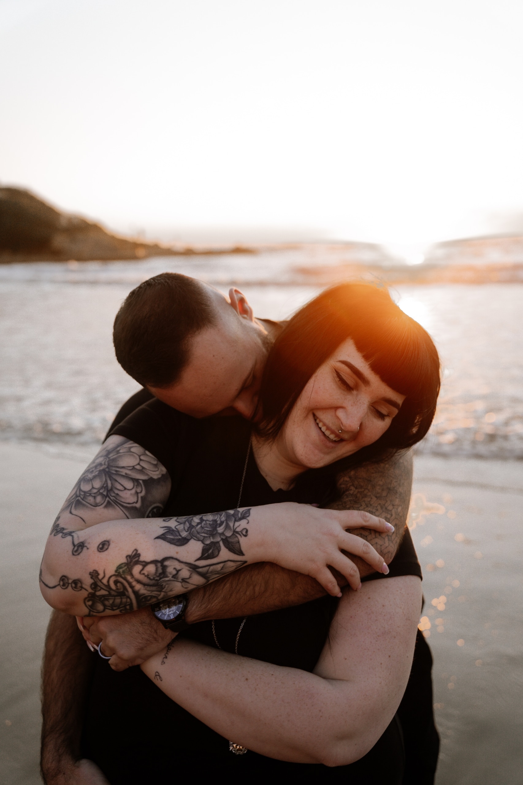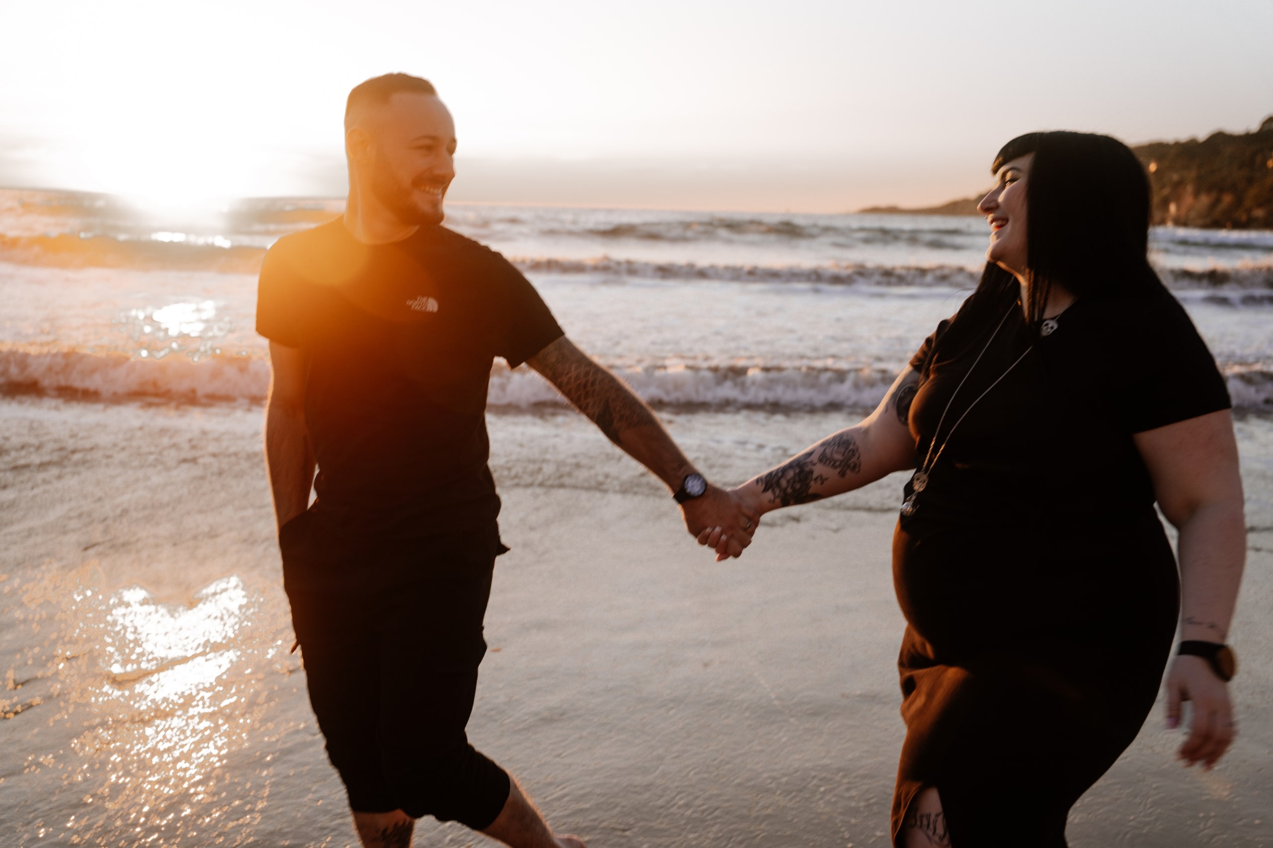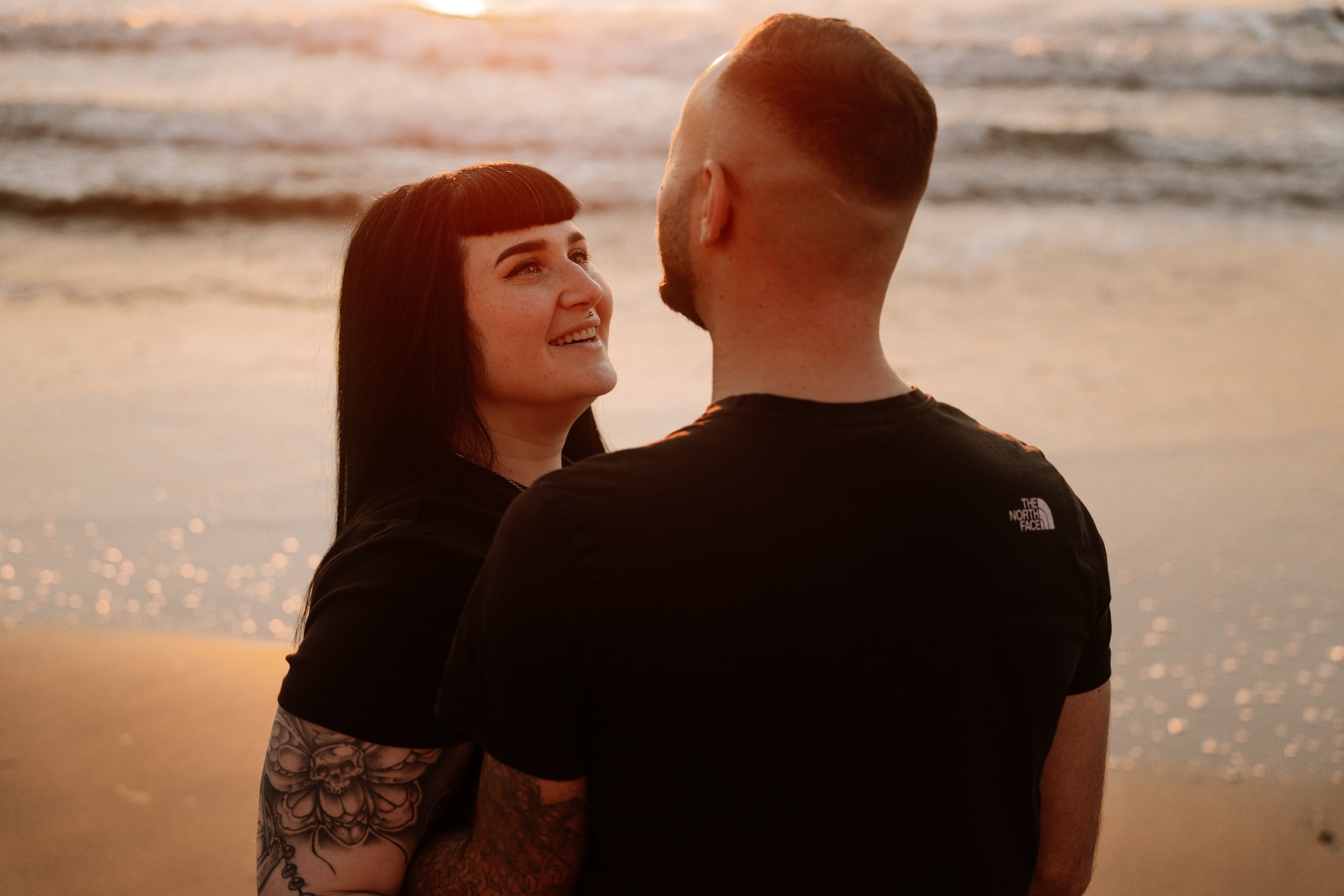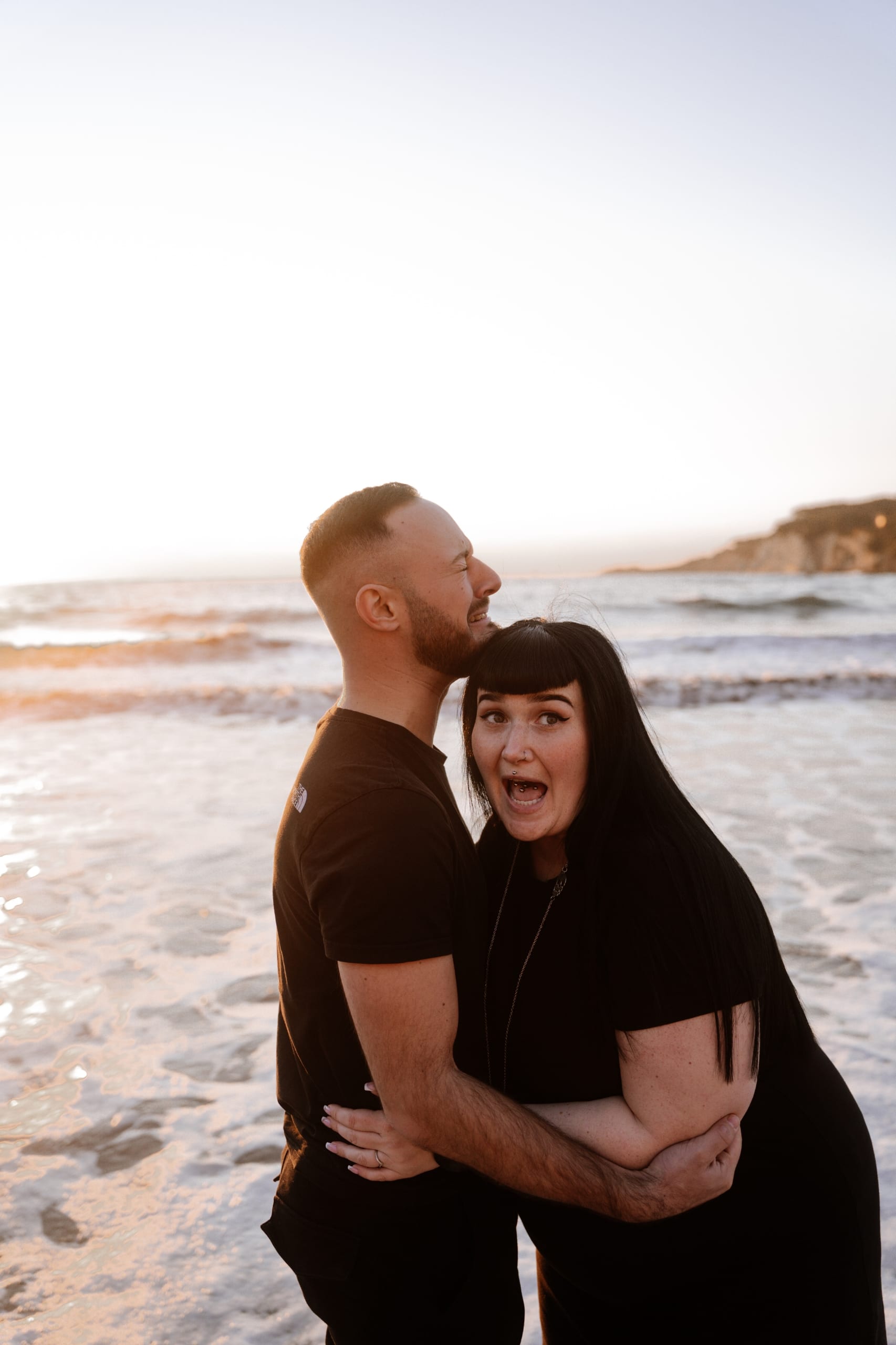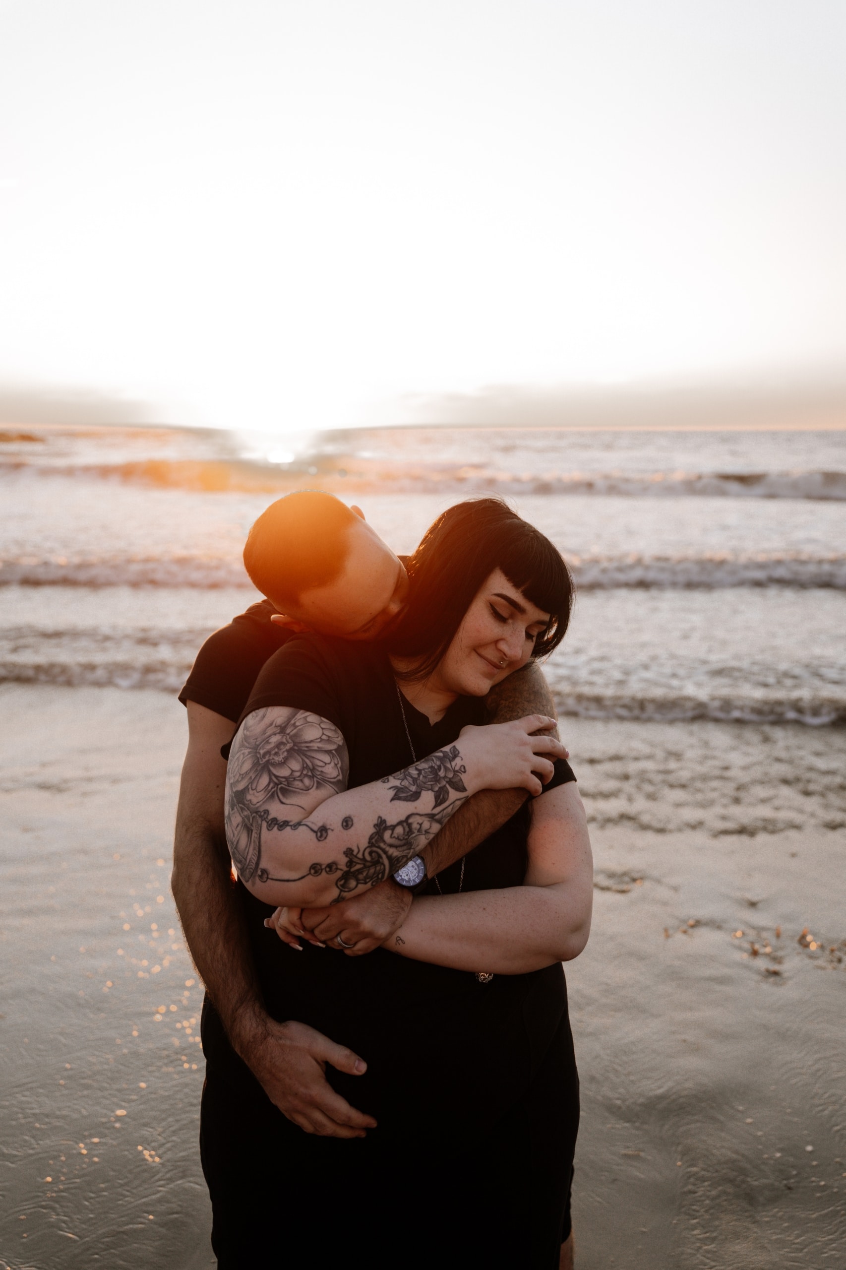 Imaginez-vous sur une plage, les pieds dans l’eau, avec un coucher de soleil flamboyant en arrière-plan. C’est exactement ce qui s’est passé lors de cette séance. La lumière dorée du soleil couchant a enveloppé le couple, créant une atmosphère magique. Chaque cliché dégageait une chaleur et une tendresse, témoignant de l’amour qui les unit. Les couleurs chaudes du ciel se reflétant dans l’eau ont ajouté une touche de féerie, rendant ces instants encore plus mémorables.